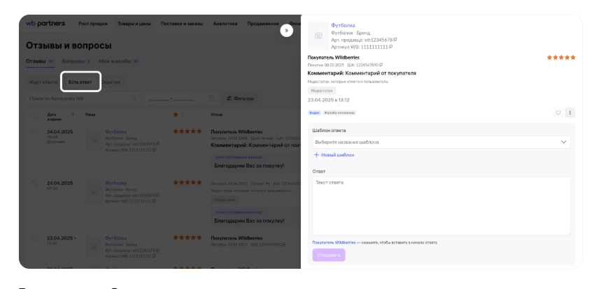 Оперативность. Отвечайте покупателю в первые 1-3 дня после совершения покупки, пока его впечатления о товаре еще свежи. Быстрая реакция подчеркивает заинтересованность продавца. Вежливое и внимательное отношение к потребностям аудитории маркетплейса помогает привлечь новых клиентов. На ВБ отзывы публикуются сразу после модерации, вне зависимости от того, ответил на них продавец или нет. Идеальный вариантом является ответ селлера еще на этапе модерации комментария.