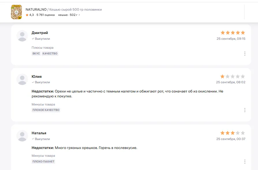 Нередко рост числа возвратов происходит постепенно. Например, качество изделия ухудшилось, клиенты начали оставлять отзывы. Потенциальные покупатели перестали добавлять артикул в корзину после прочтения негативных комментариев. Карточка товара опустилась в поисковой выдаче. В подобной ситуации придется провести комплексную работу над повышением процента выкупа. Сложнее всего будет исправить ситуацию с отзывами и просевшей оценкой магазина, поскольку пользовательский контент играет решающее значение при выборе.