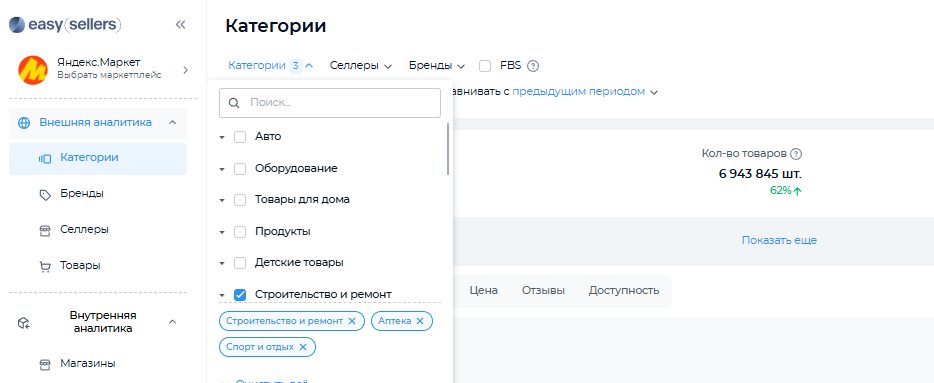 Задачу поиска новых ниш для выхода на ЯМ и усиления ассортимента поможет решить Easy Sellers Tool (Изи Селлерс Тул). Запуск новых SKU — лучший драйвер роста. Сервис умной аналитики позволяет находить удачные варианты для расширения товарной матрицы.
