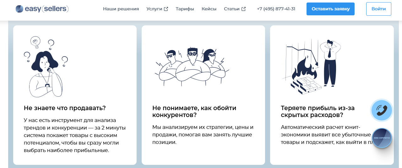 Правила продажи, рекламы и хранения товаров на маркетплейсах постоянно меняются. Нестабильный покупательский спрос и конкуренция усложняют работу продавца. Если вы хотите делегировать работу с контентом, аналитикой, продвижением, логистикой, закупками и другими бизнес-процессами, команда Easy Sellers (Изи Селлерс) готова помочь.