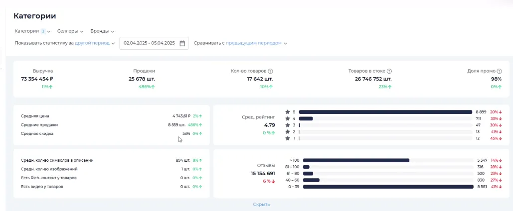 мониторить рыночные тренды в разных категориях;