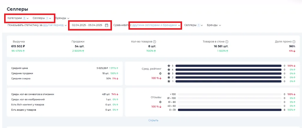Красивые фото, полезная инфографика, подробное описание, выгодная цена — все это повышает шансы на успех, но не гарантирует прибыли. Чтобы понять рыночные тренды и использовать их для роста продаж, нужна детальная аналитика по товарам, брендам и селлерам. Используйте возможности Easy Sellers Tool для оценки рентабельности продуктов, оптимизации логистики, мониторинга конкурентов и маркетинга.
